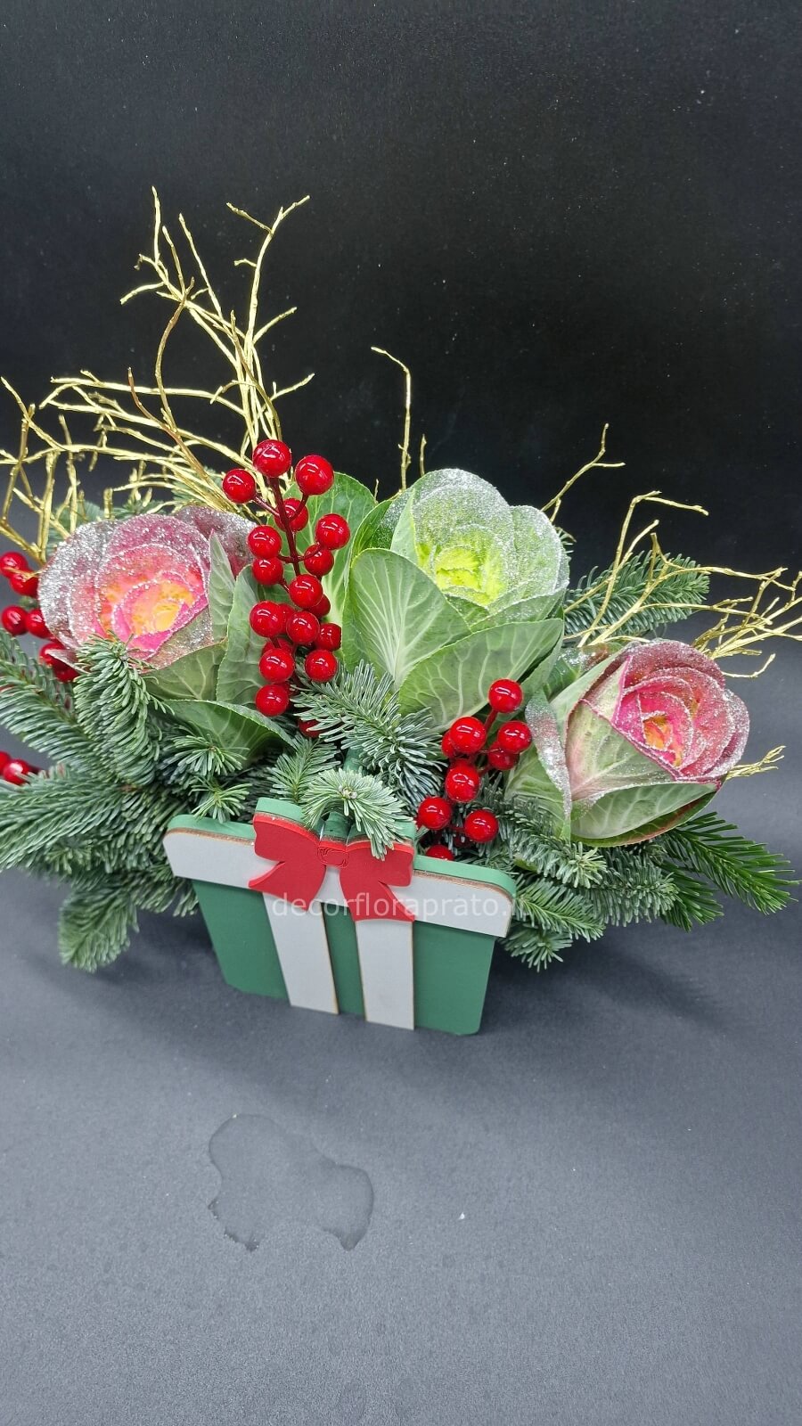 Molto originale ,con fiori recisi-cavoli decorativi molto particolari